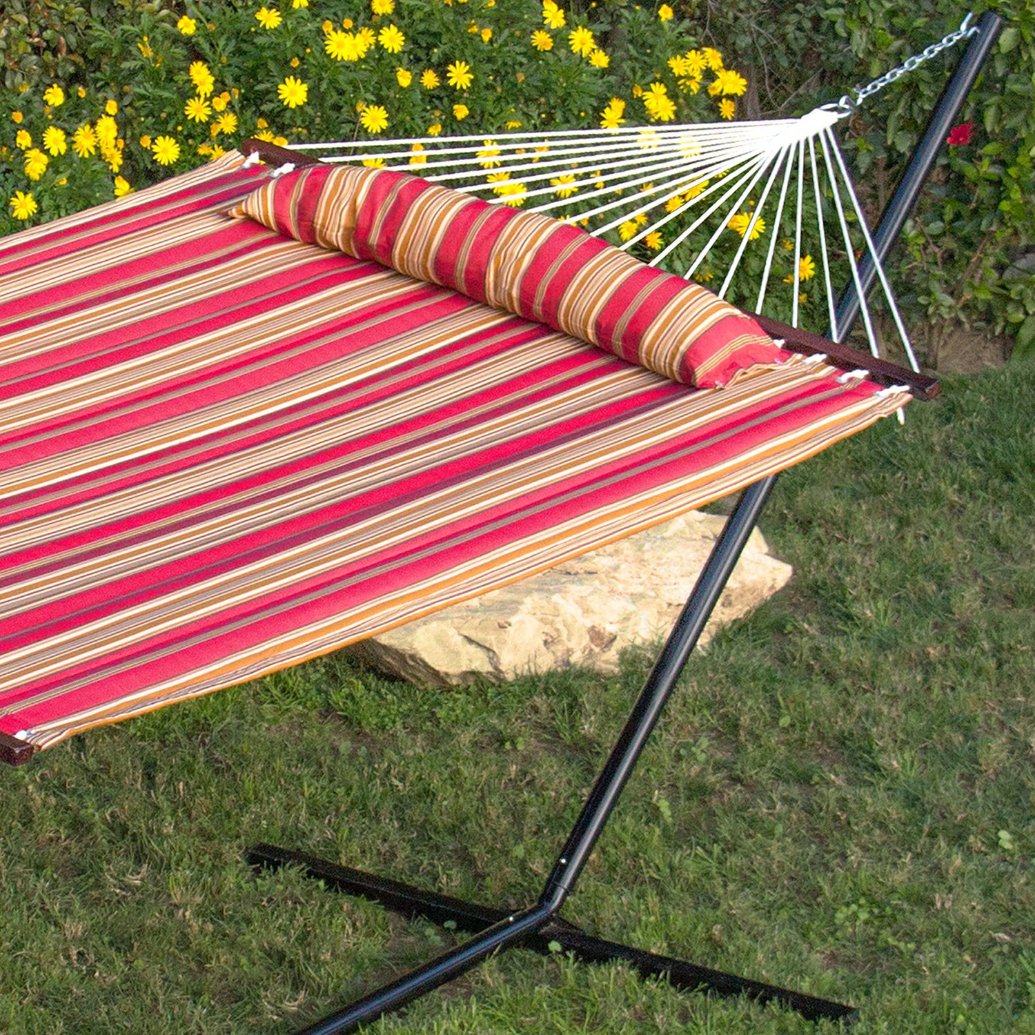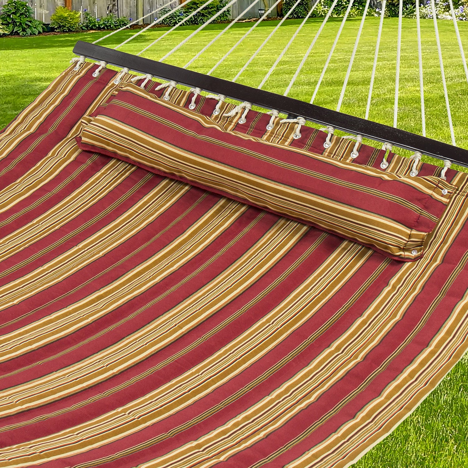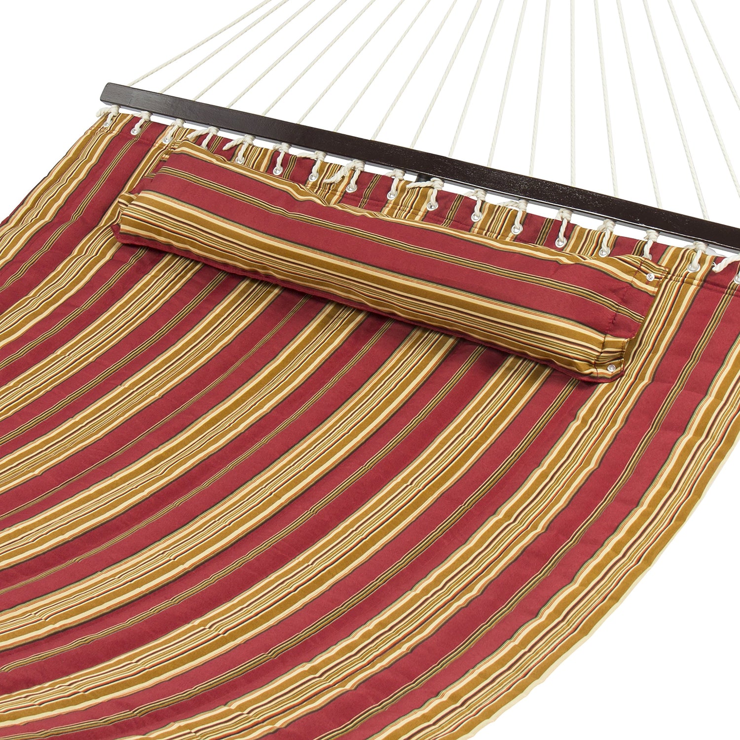 Quilted Double Hammock with Detachable Pillow & Spreader Bar - Best Choice Products