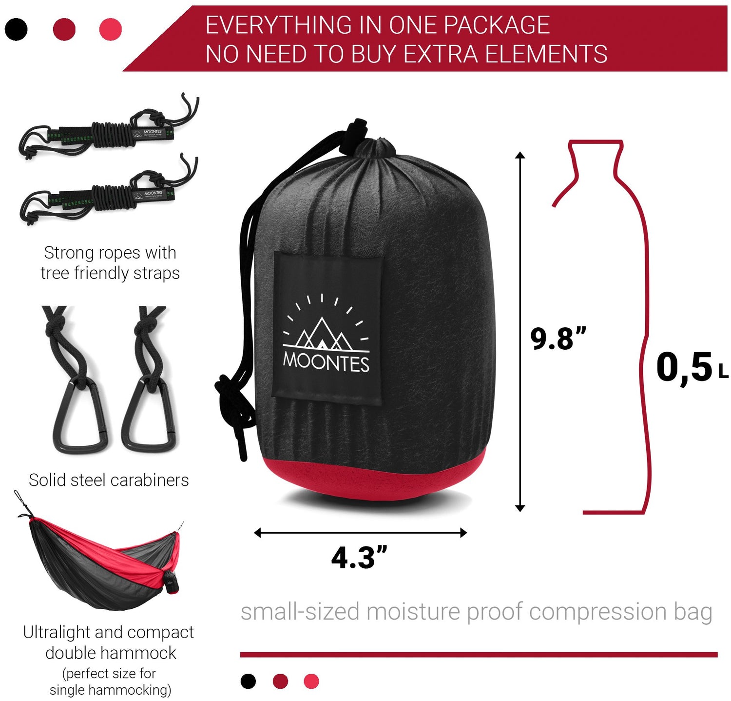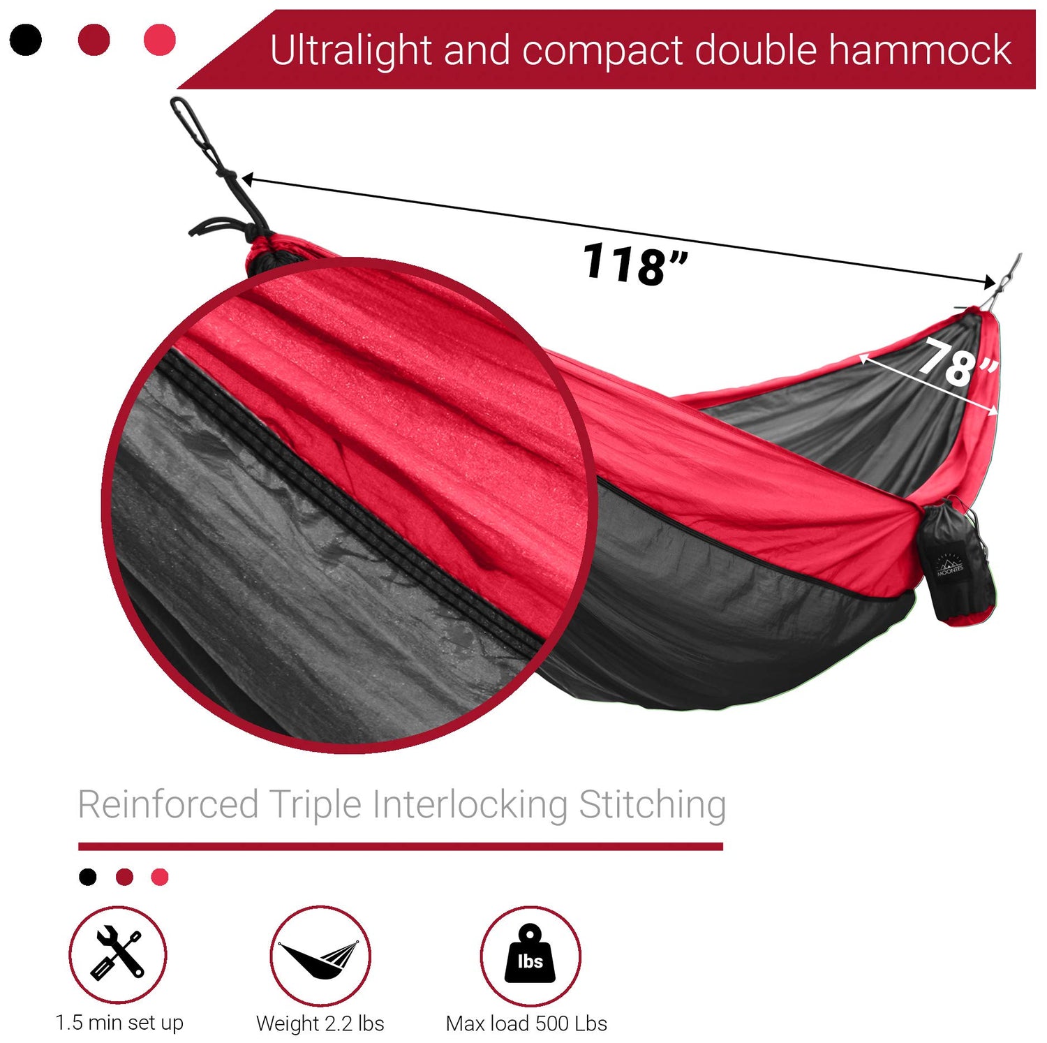 Nylon Double Camping Hammock with Straps - Moontes