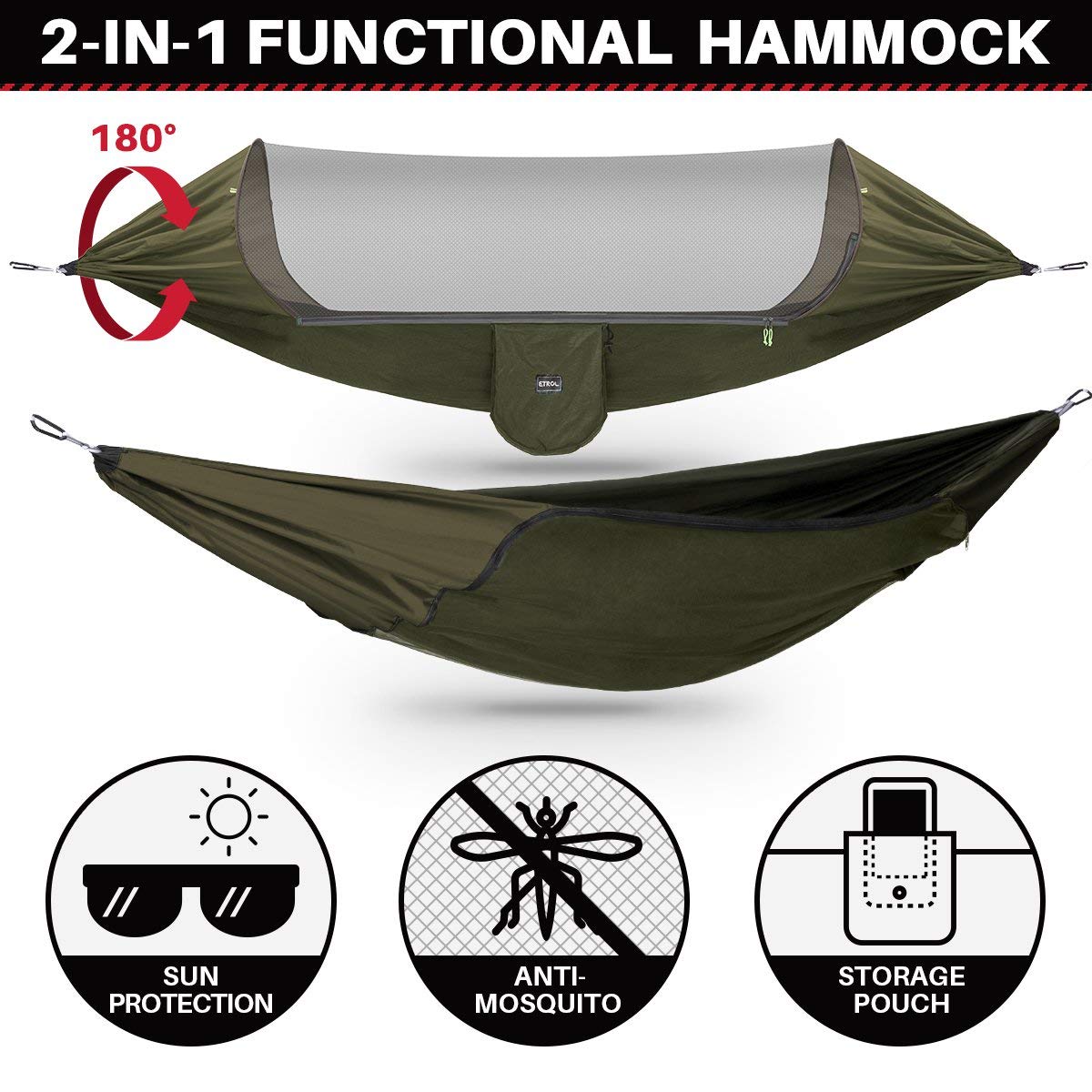Large Camping Hammock with Mosquito Net & Tree Straps - ETROL