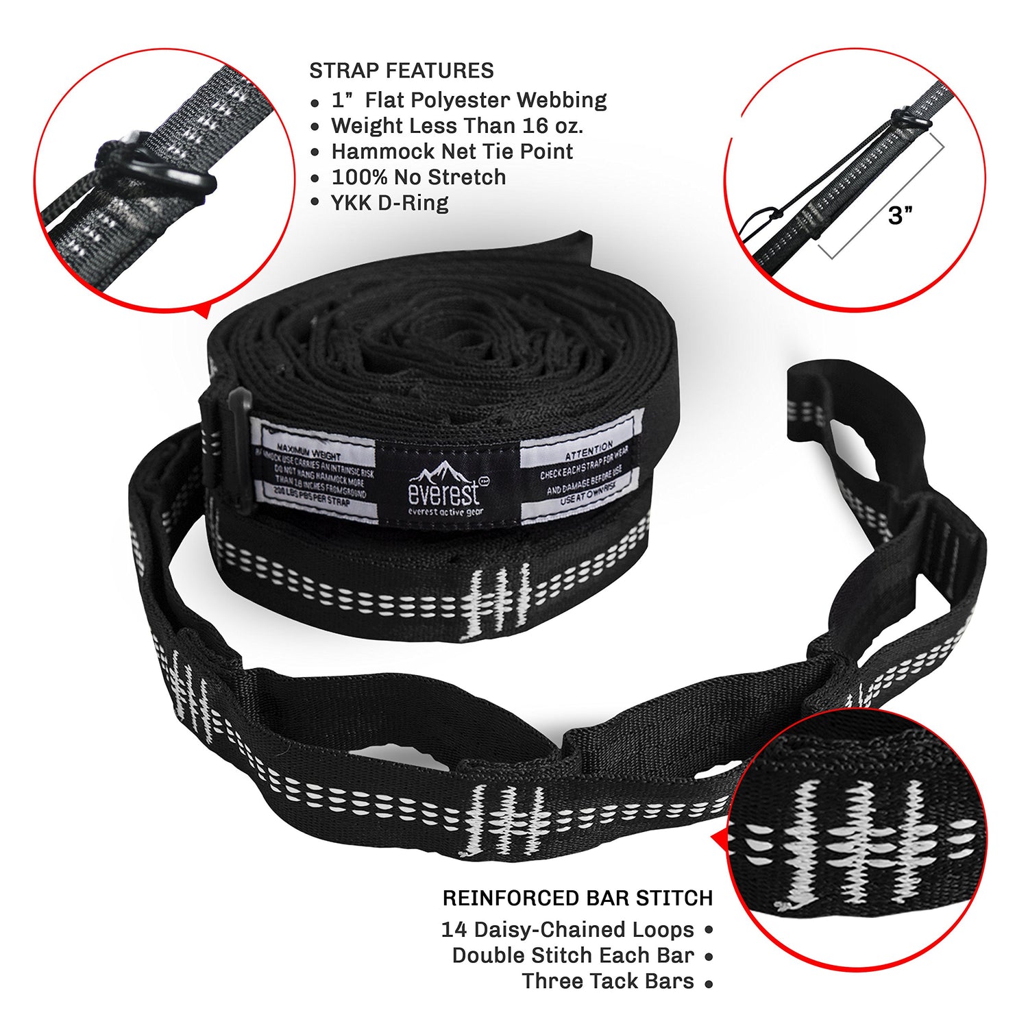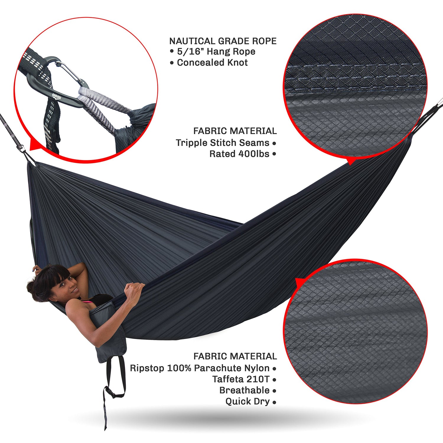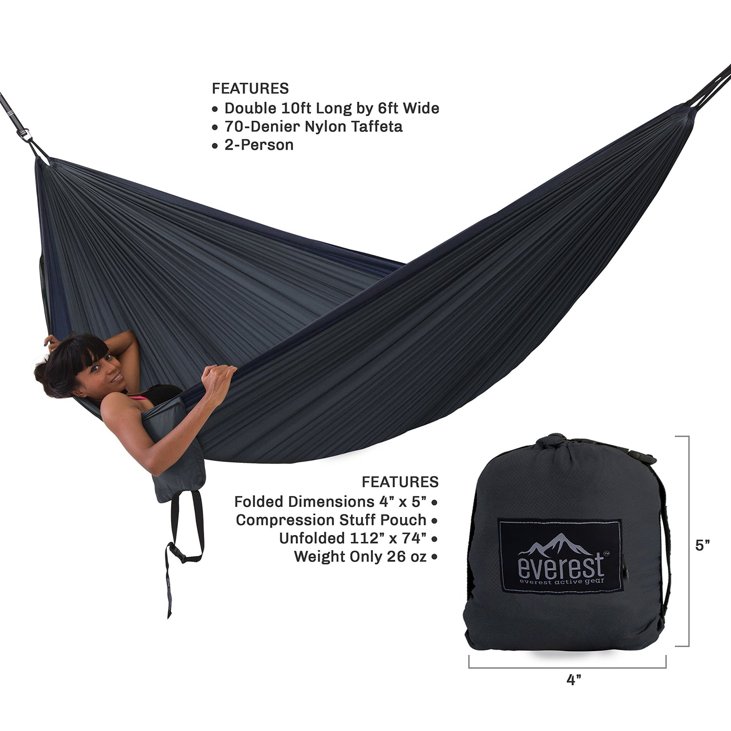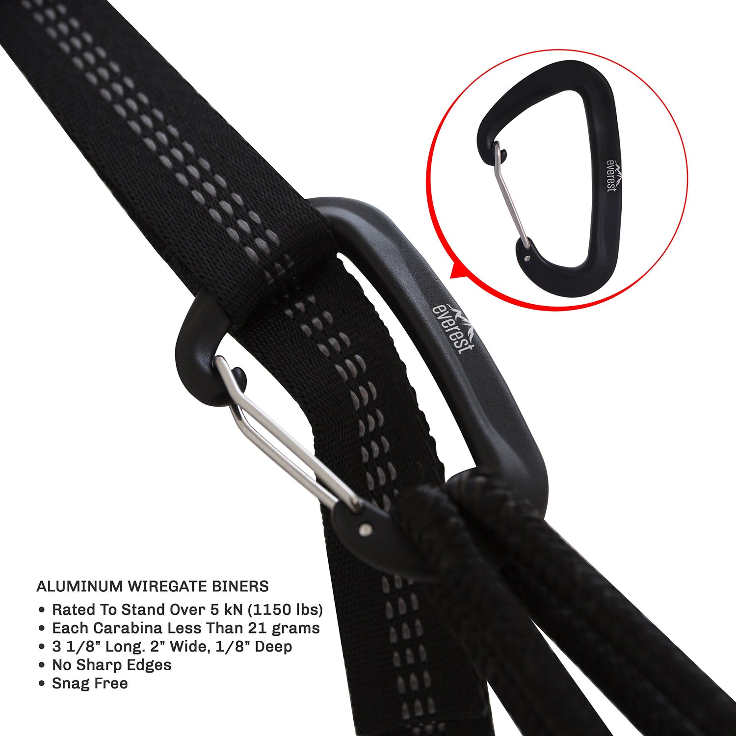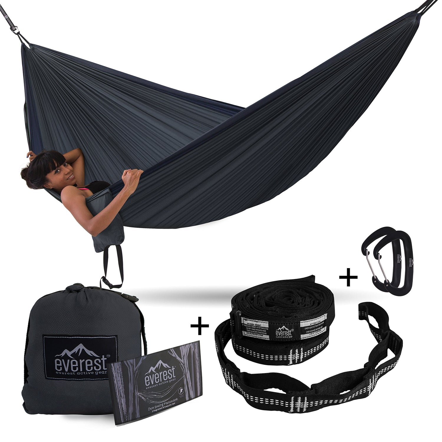 Double Camping Hammock with Carabiners & Tree Saver Straps - Everest