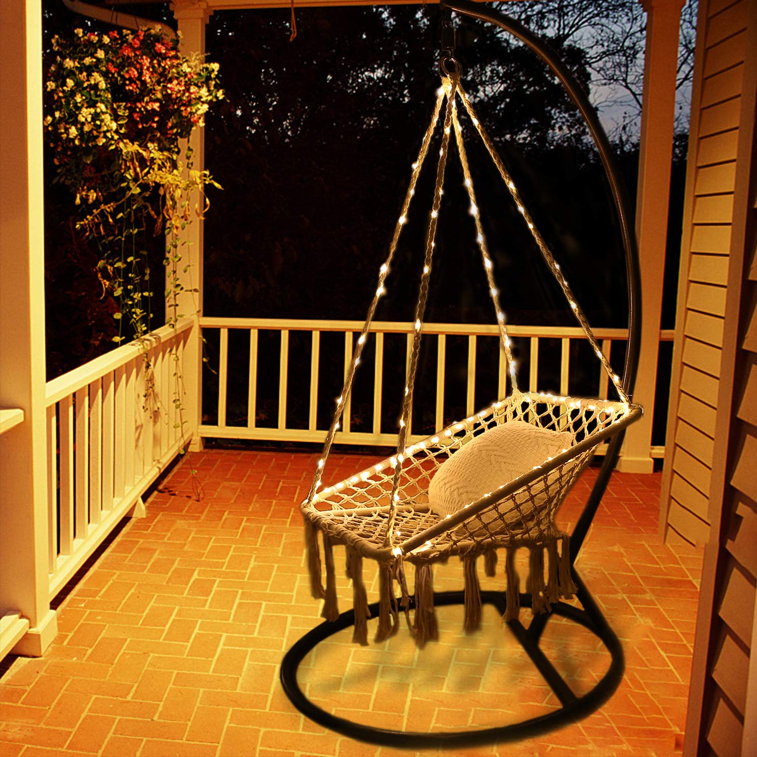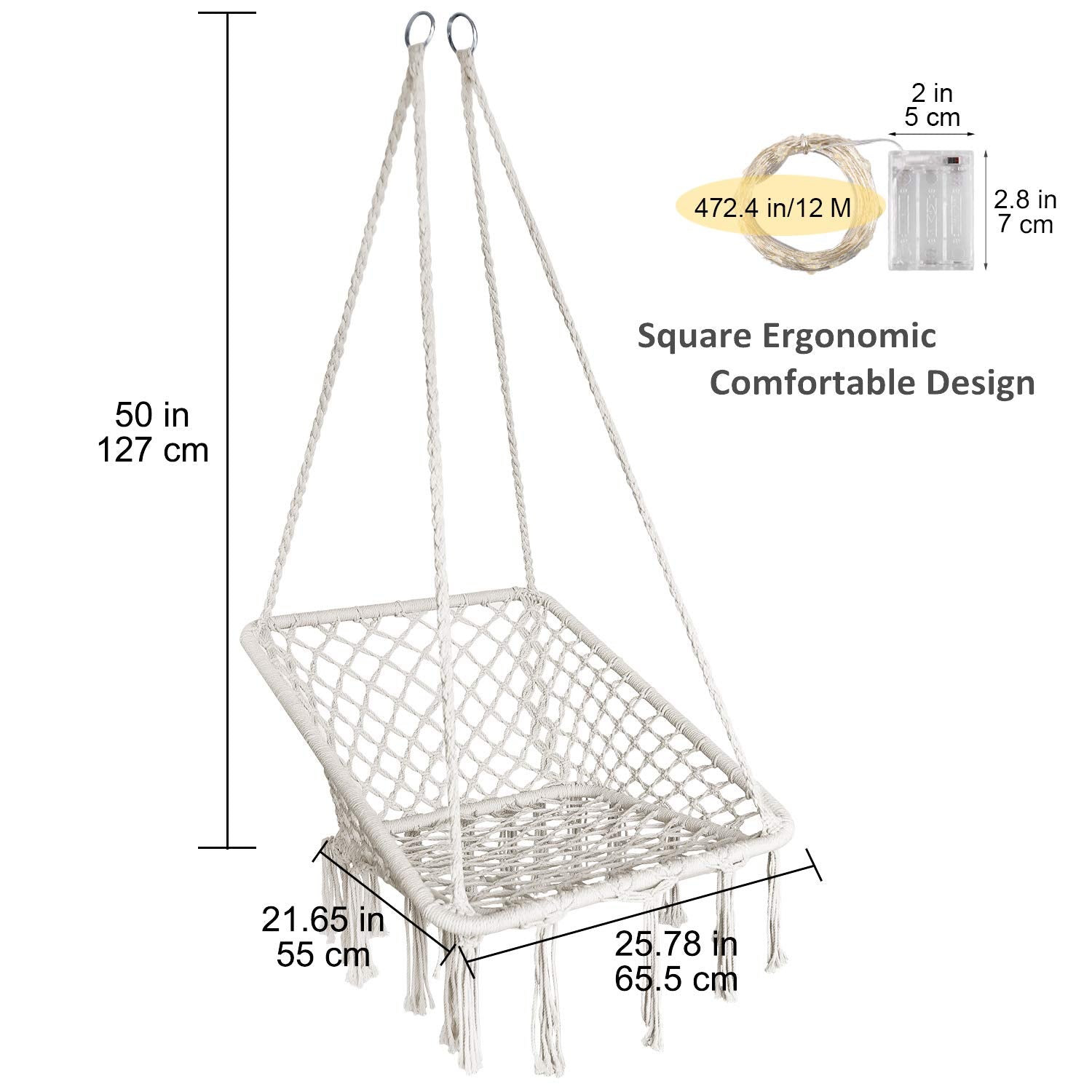 Square Shape Cotton Hammock Chair with Lights - KINDEN