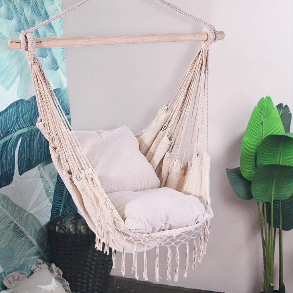 Hanging Chair with Weave Cotton Rope & 2 Seat Cushions - Quaanti