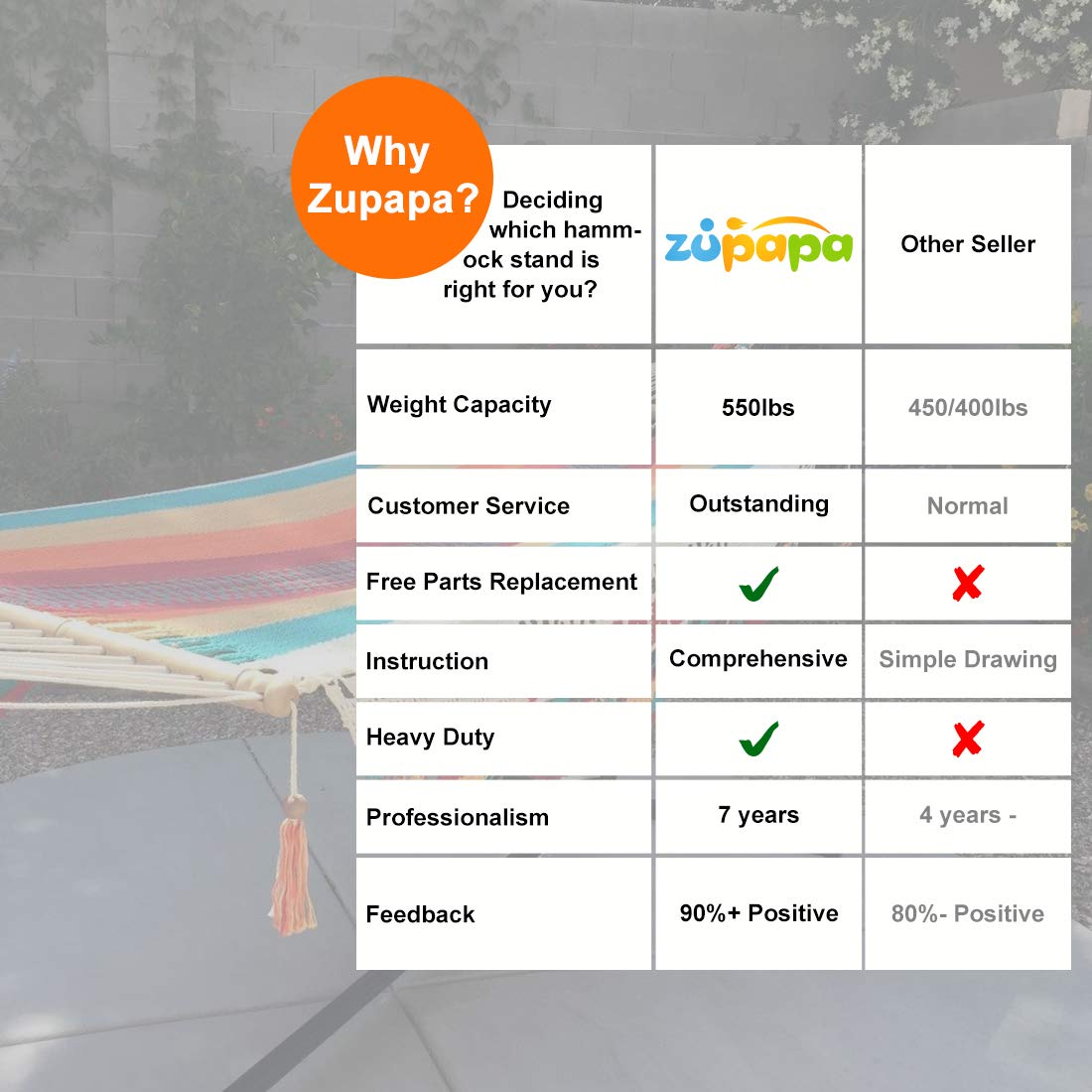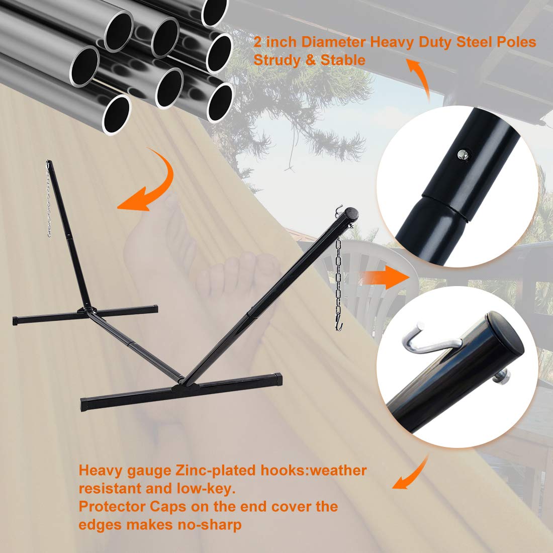Zupapa Hammock Stand with 2 Steel Chains & 1 Carry Bag